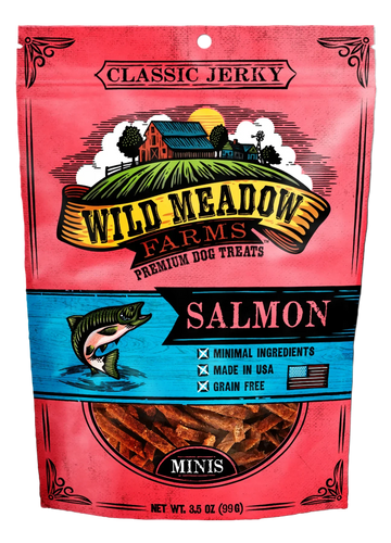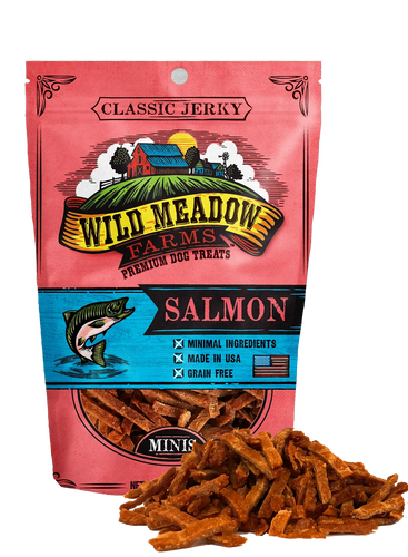Our all-USA, Classic Jerky Salmon treats are made with high quality, minimal ingredients. These mini jerky treats are the perfect high value treat that is ideal for training. They are small enough to not fill up your dog while being so delicious that they keep their attention.