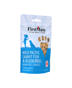 FirstMate’s Limited Ingredient Wild Pacific Caught Fish & Blueberries Treats are designed to be a meat based alternative to a typical biscuit. We proudly use wild caught pacific whole herring, sardine and anchovies. This grain, glycerine, gluten and pea free formula is ideal for everyday use as a treat or training aid for your dog.