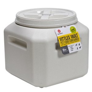 GAMMA2, Inc. (the maker of the Vittles Vault, GAMMA Seal Lid and Skamper-Ramp) first created and patented an airtight container in 1989. The original concept was designed for the biomedical storage industry, but GAMMA2, Inc.'s CEO, Curt Leland, saw an unmet need in the pet industry.