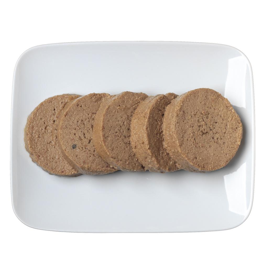 Deboned Duck, Water Sufficient for Processing, Pea Protein, Dried Peas, Natural Flavor, Calcium Carbonate, Potassium Chloride, Salt, Choline Chloride, Sodium Phosphate, Agar-Agar, Flaxseed, Locust Bean Gum, Xanthan Gum, Minerals (Zinc Amino Acid Complex, Iron Amino Acid Complex, Manganese Amino Acid Complex, Copper Amino Acid Complex, Potassium Iodate, Cobalt Glucoheptonate, Sodium Selenite), Vitamins (Vitamin E Supplement, Vitamin B12 Supplement, d-Calcium Pantothenate, Vitamin A Supplement, Niacin, Vitamin D3 Supplement, Riboflavin Supplement, Folic Acid, Pyridoxine Hydrochloride, Biotin, Thiamine Mononitrate).