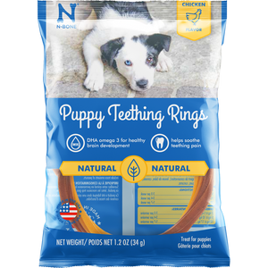 N-Bone® Puppy Teething Rings are easy for floppy puppy paws to hold onto and provide a soothing and appropriate outlet for chewing. Formulated with DHA and calcium to support your puppy’s unique nutritional needs, our delicious chicken flavored rings are pliable and won’t damage immature teeth. Try N-Bone® Puppy Teething rings today!