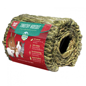 The perfect accessory for small pets!  The 100% hand-woven, 100% hay Timothy Hideout is the ideal size for smaller pets such as hamsters and gerbils to hide, burrow, and nest in.  Stuff with hay or healthy treats to encourage hamster and gerbil burrowing, or use as a hay manger for larger pets like rabbits, guinea pigs, and chinchillas.  100% natural and hand-woven to perfection.