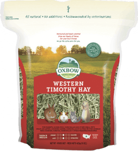 Oxbow’s all-natural Western Timothy Hay is a nutritious, sweet-smelling grass that will stimulate the appetite of your rabbit, guinea pig, chinchilla, or other small pet. Western Timothy is the #1 vet-recommended hay for small herbivores.