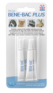 Bene-Bac® Plus Small Animal Gel is a palatable gel in easy-to-use, 1-gram tubes containing concentrated FOS and live, naturally occurring microorganisms.