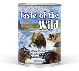 Taste of the Wild Pacific Stream canned dog food is every salmon loving canine carnivore's dream! Made with real smoked salmon and oceanfish, and coupled with nutritious grain free carbs like sweet potatoes, peas, carrots, and blueberries, this recipe delivers a high protein punch that will keep your pooch fueled. Whether as a kibble topper for the picky dogs, or a complete meal, Taste of the Wild Pacific Stream canned dog food will take care of your companion’s wants and needs