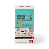 With no antibiotics, hormones, GMOs, corn, soy, rice, beet pulp, or wheat… you can rest assured there’s absolutely nothing fishy about this fish. In fact, this epicurean dish that’s perfect for adult dogs features wild-caught, Marine Stewardship Council Ccertified white fish plus antioxidant-rich produce—all dehydrated for prime nutrient retention and superior bio-availability and digestibility. Even dogs with the most sensitive of tummies will fall for this low-carb, lower calorie, grain-free, and easy-to-digest food. And hey… we’re not trying to fish for compliments or anything, but our Grain Free Fish is 100% human grade—as always.