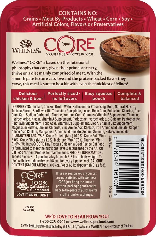 Wellness CORE is based on the nutritional philosophy that cats, given their primal ancestry, thrive on a diet mainly comprised of meat. With the smooth pate texture cats’ love and the protein-packed flavor they crave, this meal is sure to be a hit with even the finickiest of felines!